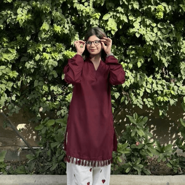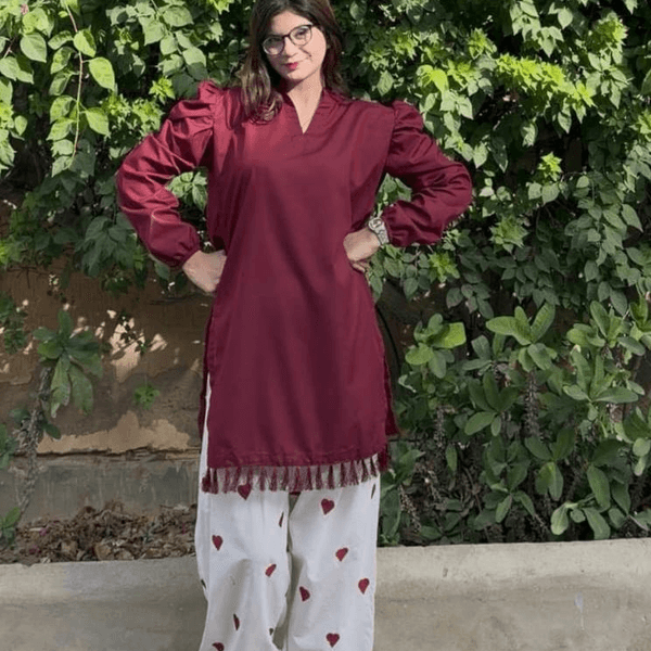 Trendy and comfortable 2-piece cotton suit featuring a stylish embroidered heart design paired with a classic farshi sha Read More