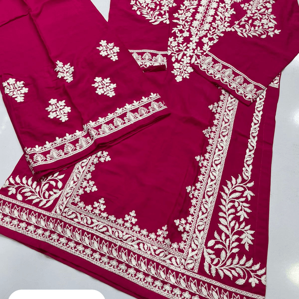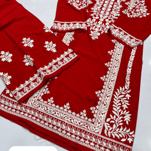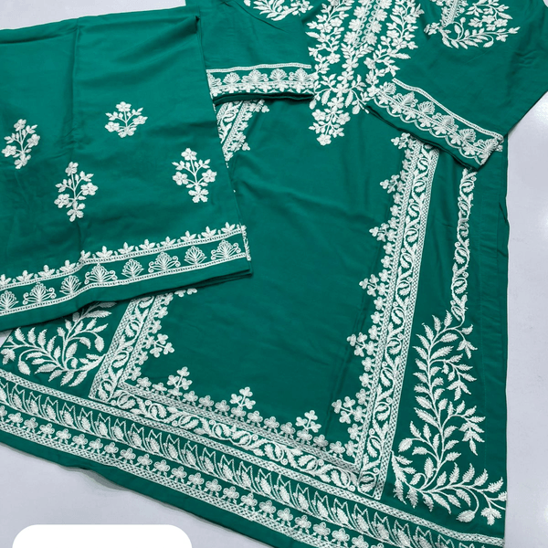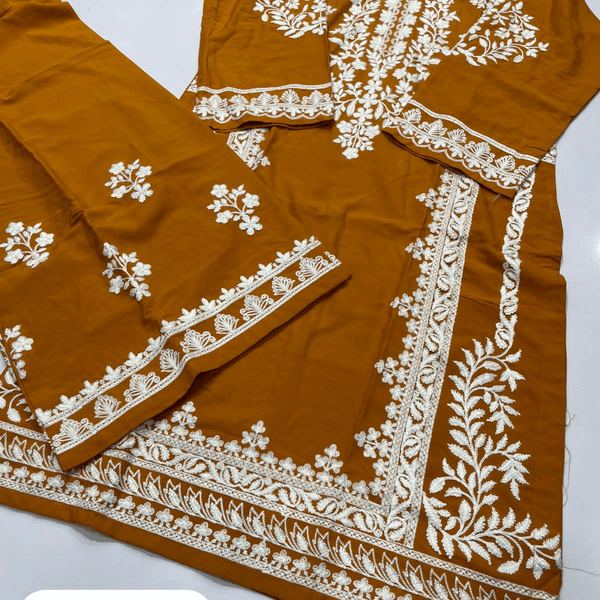 New Arrival Boski Linen 2PC Suit – Chicken Embroidery Bell Bottom Style